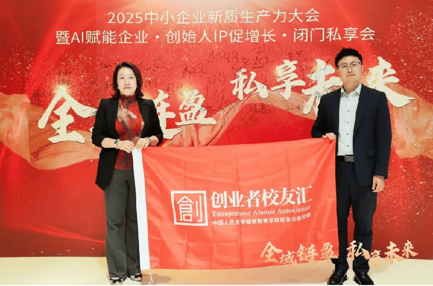 5月24日—25日,为进一步推动中小企业数字化转型与高质量发展,RUC创业者校友汇联合人民智能内容运营产业基地主办,联合政、产、学、研、投多界力量启动的“2025中小企业新质生产力大会暨AI+企业创始人IP促增长闭门私享会”在北京召开。活动以“全域链盈·私享未来”为主题,聚焦AI赋能、创始人IP构建与企业增长三大核心方向,搭建认知跃迁、能力提升、资源链接的实效型闭门交流平台。社团发起人许静全程参与本次活动。