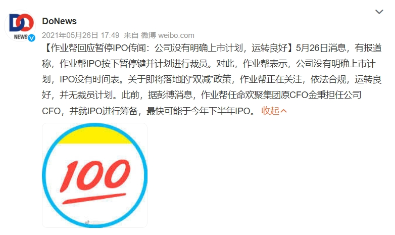 事实上,早在2021年就曾有作业帮“赴美上市”的消息传出;对此,作业帮回应称,公司没有明确上市计划,IPO没有时间表。