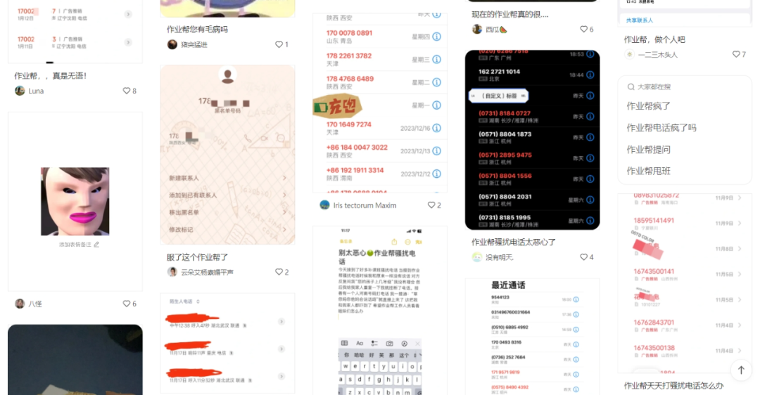 作业帮在营销方面也被不少家长、网友诟病。在小红书等社交平台上,不少网友吐槽作业帮存在电话骚扰、电话推销的问题。有网友表示,只是下载了App后开通VIP,从中午开始就陆续接到作业帮广告推销电话。