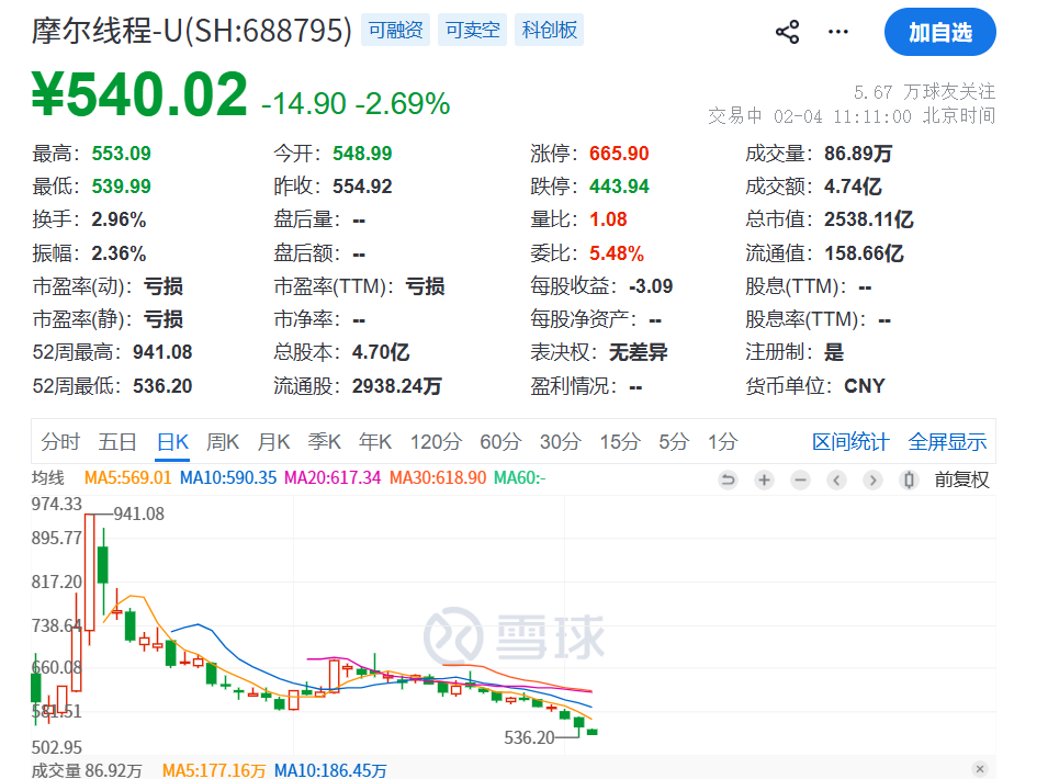 目前已经上市的芯片商,股价表现都比较出色。沐曦股份和摩尔线程2025年12月先后登陆科创板,摩尔线程上市首日开盘价较发行价涨幅超468%,市值突破2500亿港元;沐曦股份首日开盘价较发行价暴涨568%,上市首日盘中股价一度冲高,投资者中一签浮盈最高逼近40万元,直接刷新近十年A股上市首日单签盈利纪录。今年1月刚登陆港交所的壁仞科技,上市当天大涨76%,市值也突破千亿港元。