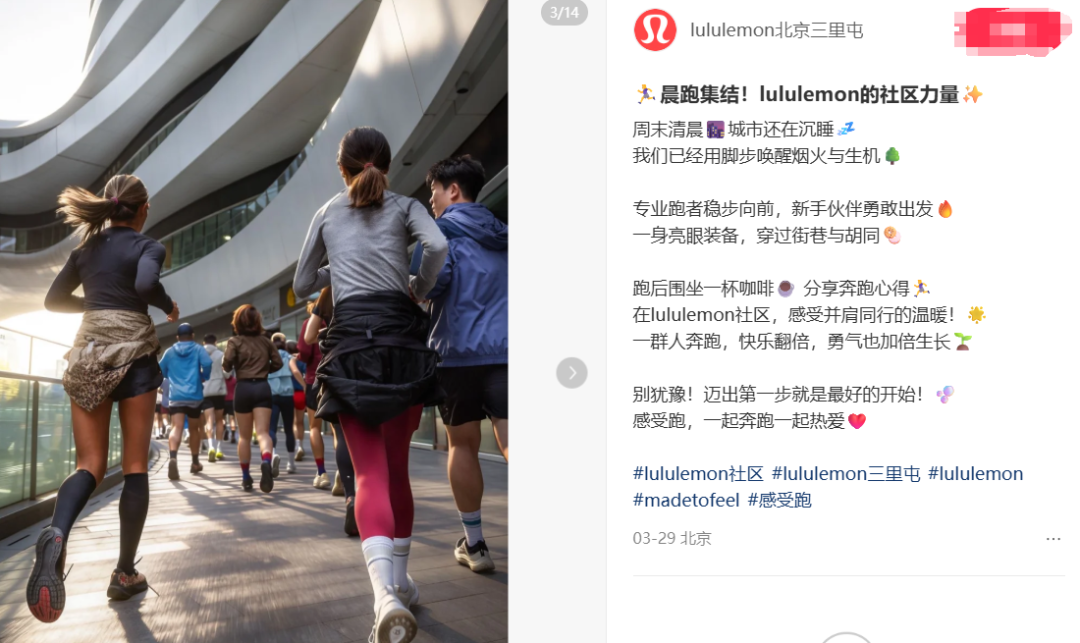 而当门店消费体验无法匹配千元档位的消费水平,品牌的“精英叙事”便开始松动。lululemon是一个乘着“概念”起飞的品牌,产品本身的壁垒不算高,溢价空间来自品牌的人群定位、场景聚焦和文化表达。在全运动行业都在探索门店渠道革新的当下,lululemon显然有些落后。