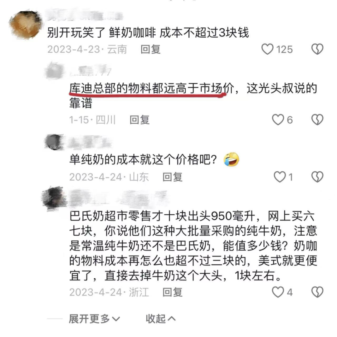 早在去年,就有一位联营商在抖音发视频吐槽自己花了45万当“小韭菜”时就有评论表示“库迪总部的物料远高于市场价”。在小红书一条发布转店消息的帖子下面,联营商说自己亏本做生意才倒闭时,也表示“供应链吃太多”。