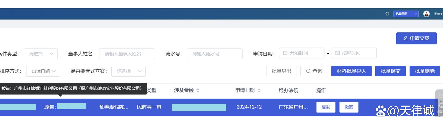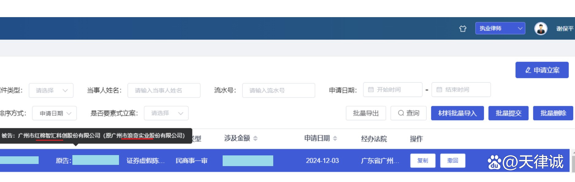 广州浪奇索赔时效倒计时仅剩8天,至2024年12月20日截止,这一紧迫的时刻无疑给众多投资者带来了不小的压力。错过这一时限,将意味着他们可能永远失去通过法律途径追回损失的机会。在2024年12月12日这日,谢保平律师团队再次向广东省广州市中级人民法院提交了一批关于000523广州浪奇投资者索赔的立案材料。这一举动不仅是法律程序上的常规操作,更是对正义与公平不懈追求的体现。在此之前,已经有多批因广州浪奇虚假陈述行为而遭受经济损失的投资者,通过法律途径获得了一审和二审的胜诉判决,并且部分代理的投资者已经成功获得了相应的赔偿。