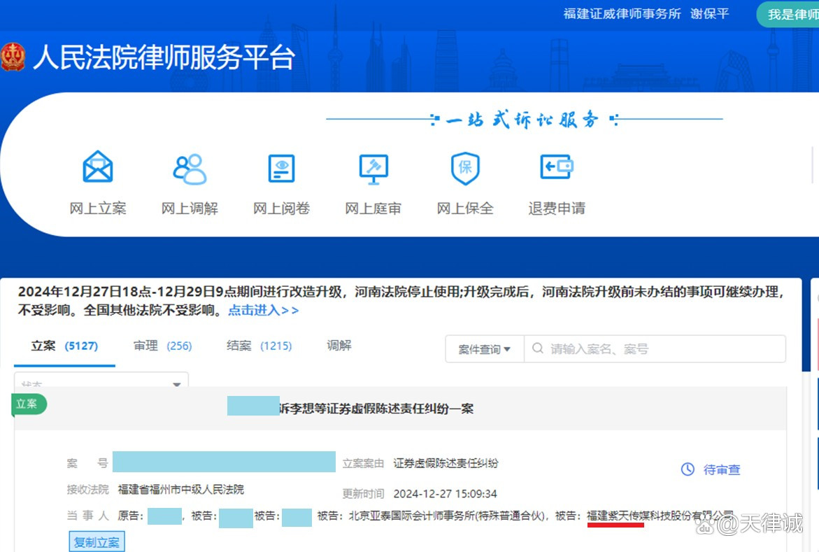 紫天科技索赔进展更新,12月27日再添一批投资者正式提交立案