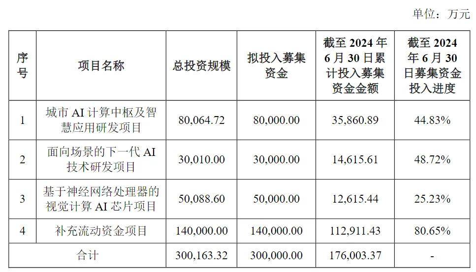公司城市AI计算中枢及智慧应用研发项目、面向场景的下一代AI技术研发项目、基于神经网络处理器的视觉计算AI芯片项目此前预计2024年12月达到可使用状态,此次则延迟至2026年6月。