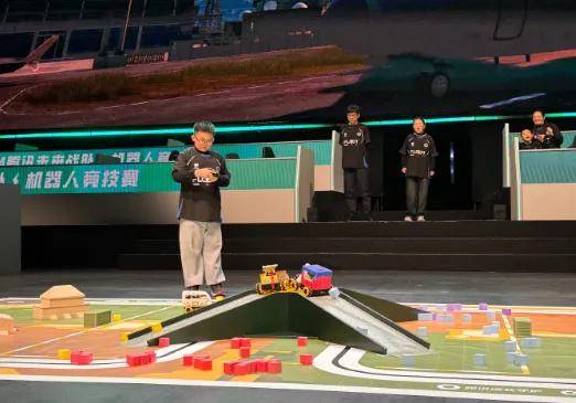最近的11月11日TGA大赛,腾讯在原本电竞赛事的专用场地举办了机器人竞技赛。并将比赛融合了和平精英的游戏玩法,加入用无人机丢“空投”、限时解锁物资、倒计时缩圈“跑毒”等元素。参赛选手则需要通过编程操控机器人完成任务赚取积分,最终,来自新疆库尔勒市第八小学的星火战队斩获了比赛冠军。