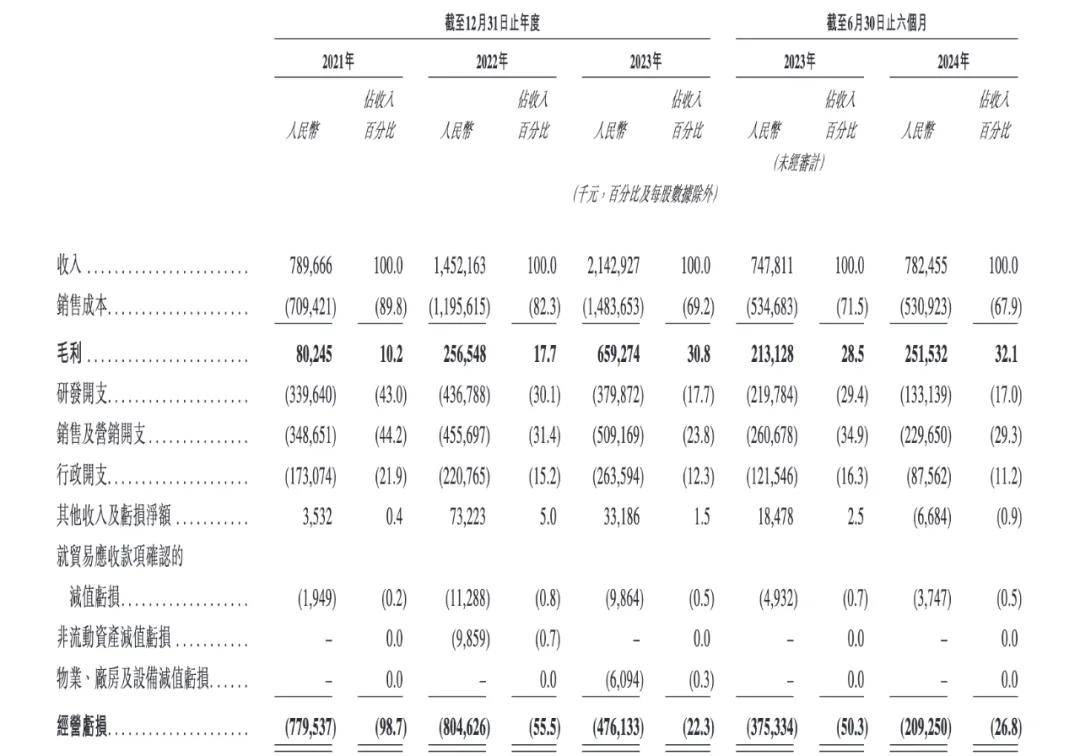 报告期内,该公司的整体毛利率分别为10.2%、17.7%、30.8%和32.1%。经调整净利率分别为-96.7%、-56.1%、-20.7%以及-24.8%。