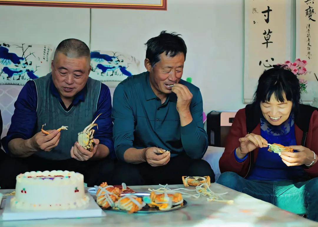 (▲甘肃人老魏今年过生日,生平第一次吃到大闸蟹,是儿子从拼多多上买的。程艺辉 | 摄)