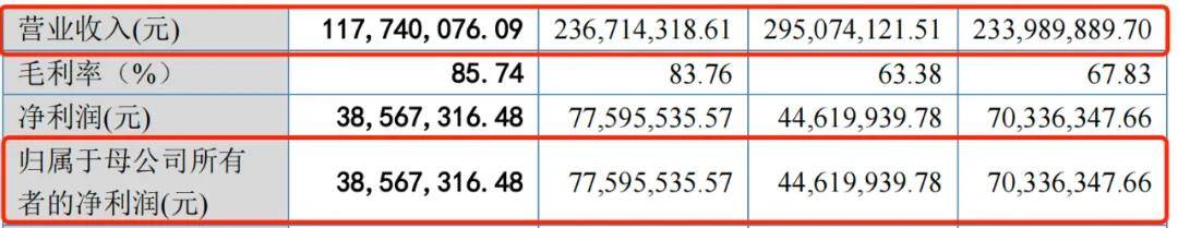 2021年-2024年上半年(以下简称“报告期”),丹娜生物的营业收入分别为2.34亿元、2.95亿元、2.37亿元和1.18亿元;同期归母净利润分别为7033.63万元、4461.99万元、7759.55万元和3856.73万元。