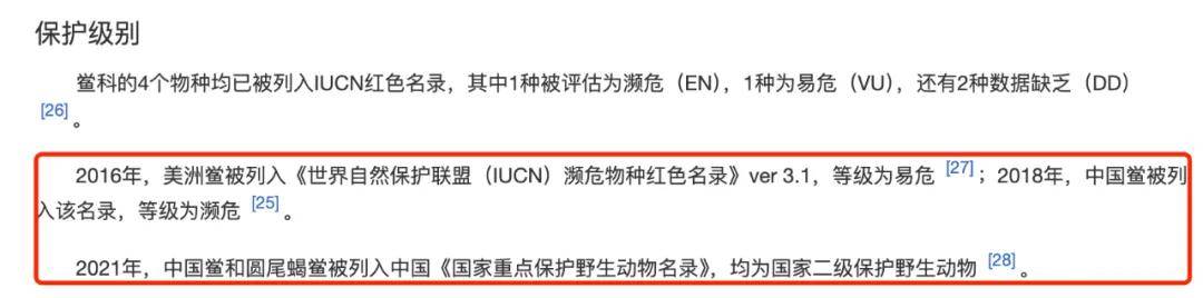 以中国鲎为例,由于中国鲎是鲎试剂的主要来源之一,因此遭受大规模捕杀。因此,2018年,中国鲎被列入《世界自然保护联盟(IUCN)濒危物种红色名录》,等级为濒危。2021年,中国鲎和圆尾蝎鲎被列入中国《国家重点保护野生动物名录》,均为国家二级保护野生动物。