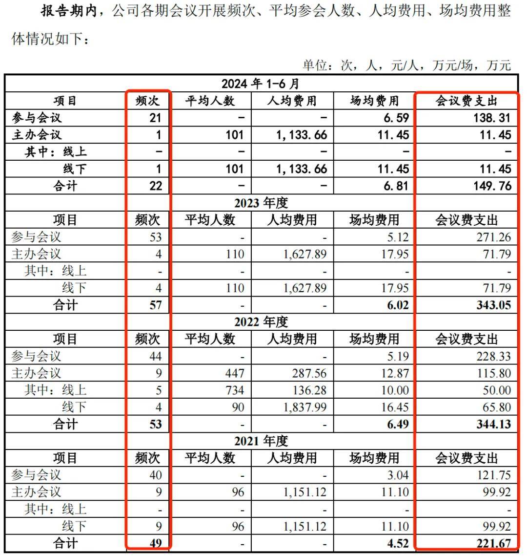 此外,生物医药企业参与行业会议是市场交流、技术展示并促进合作的重要举措。报告期内,丹娜生物参与会议的频次分别为40次、44次、53次和21次,会议费支出分别为221.67万元、344.13万元、343.05万元和149.76万元。
