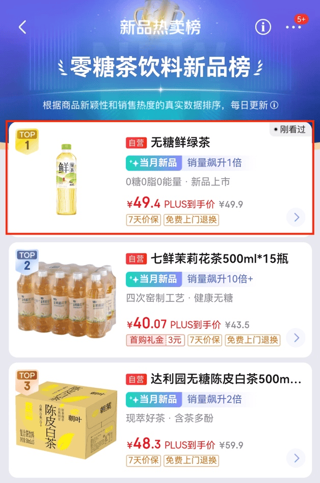 康师傅以“鲜茶、鲜榨、鲜萃”三重鲜科技为核心,成就一瓶“0糖、0代糖、0能量、0香精、0防腐剂”的高品质绿茶,为消费者带来媲美“鲜如现泡”的饮用体验,并成功登顶京东零糖茶新品榜Top1。