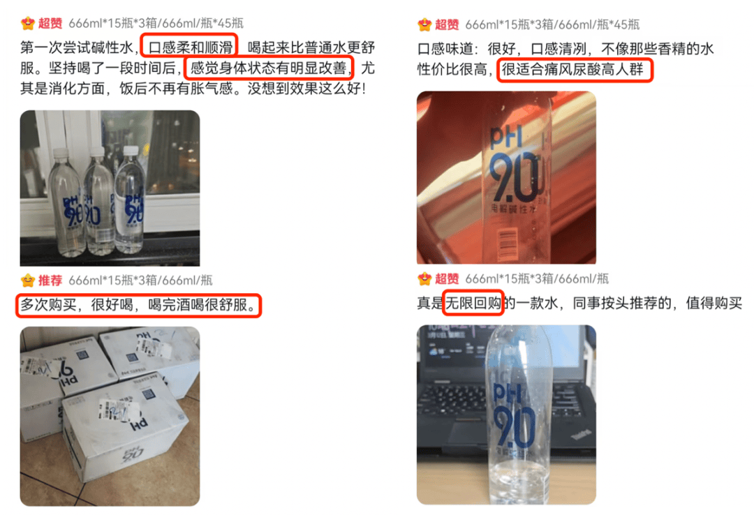 「创业最前线」在9.0电解碱性水的电商评论区发现,它堪称一款“有体感的水”!消费者们评价说:“应酬喝酒后喝,能缓解不适”,“胃反酸时喝一点,效果不错”,“认定它是我的专用水,因为我尿酸高”,“适合高强度运动后及时补充电解质,缓解运动疲劳”,“无限回购”。凭借产品实力,9.0电解碱性水还荣获了2025 ITI国际美味大奖满星奖章。