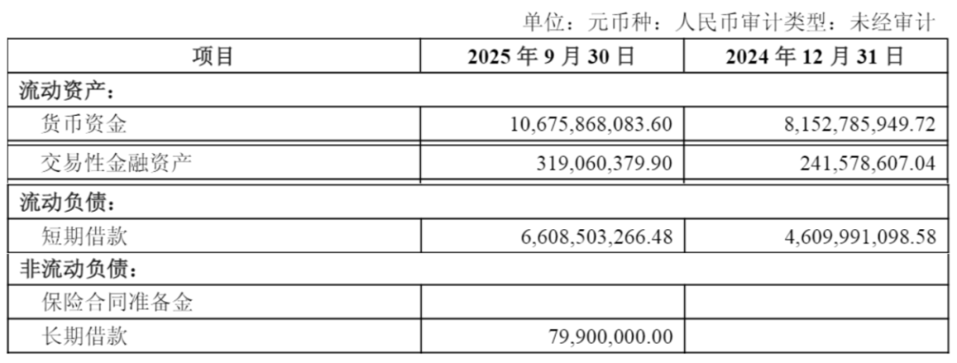 截至2025年三季度末,公司的货币资金为106.76亿元、交易性金融资产3.19亿元,流动资金约合110亿元。