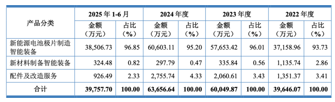 值得一提的是,报告期各期,尚水智能也存在依赖单一产品的情况,其新能源电池极片制造智能装备的营收占比一直在93%以上。在业绩增速放缓的情况下,公司也需要寻找第二增长曲线。