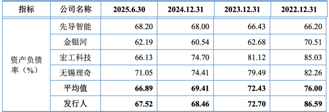 报告期内除2024年外,其余年份的资产负债率均高于同行业可比公司的平均值。