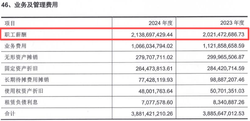 年报显示,2024年江南农商行的职工薪酬总额为21.39亿元,员工数为4212人,由此计算该行的人均年薪达到50.78万元。