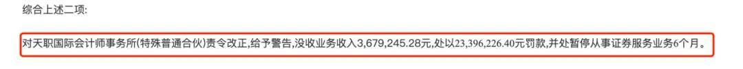 事实上,会计师事务所应当对分所的业务活动、执业质量等承担法律责任。天职国际的上述行为违反相关规定,且情节较为严重。证监会决定对天职国际责令改正、给予警告,没收业务收入367.92万元,处以2339.62万元罚款,并处暂停从事证券服务业务6个月。