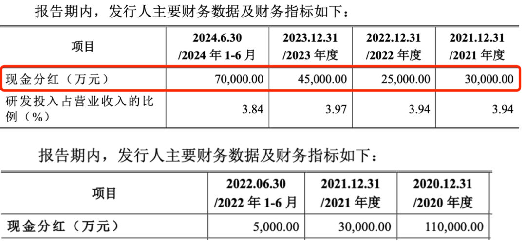 招股书显示,2020年至2024年上半年,公司现金分红分别为11亿元、3亿元、2.5亿元、4.5亿元和7亿元,四年半合计分红28亿元,分红金额已经超出收购时的分红安排。