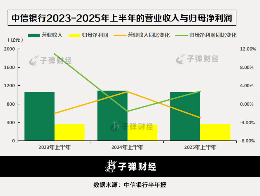 面对银行业净息差收窄的严峻经营环境,中信银行2025年上半年的业绩表现为“一增一降”。