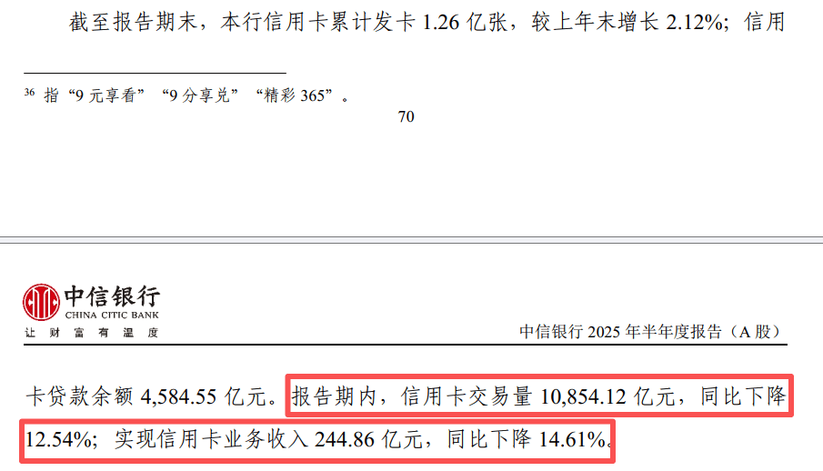 而信用卡业务领域,2025年半年报披露了三个口径的指标均同比下滑。