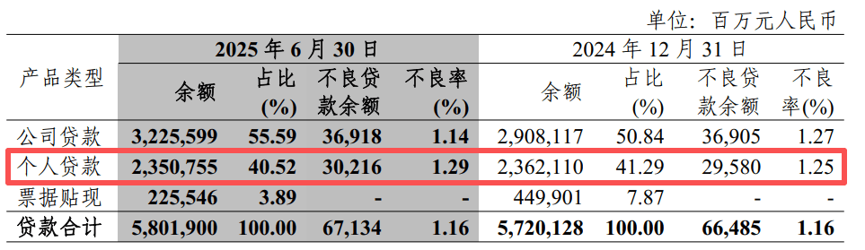 然而,细化到业务层面的不良表现,该行公司贷款的不良率(不含票据贴现)为1.14%,而个人贷款的不良率达到1.29%,较上年末上升0.04个百分点。在个人信贷业务中,消费信贷和信用卡两项业务的不良率较高。