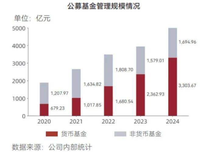2020年,万家基金货币基金及非货币基金管理规模分别为679.23亿元、1207.97亿元,2024年分别上升至3303.67亿元,1694.96亿元。在此带动下,中泰证券资管收入逐年提升。