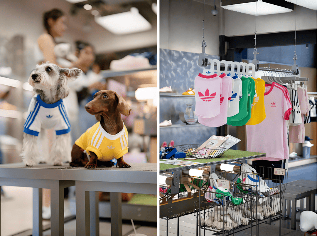 这些产品通过分布在各大城市核心商圈的关键门店触达消费者,并用“首发”激活街区活力——比如,今年5月20日在上海顶流街区安福路全新开业的三叶草全球旗舰店,开业当天,在店内全球首发了三叶草宠物系列产品。