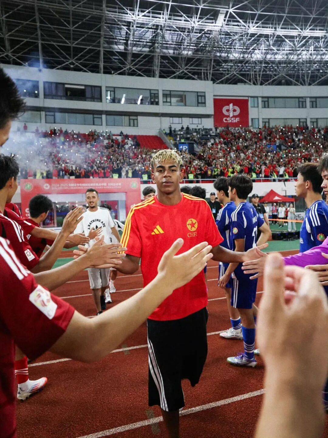 值得一提的是,球星拉明·亚马尔也亮相全国青少年校园足球联赛高中组(CHFL)决赛,与广大的中国足球少年们见面。亚马尔作为“00后”的足球文化符号,比传统巨星更易触发年轻群体共情。