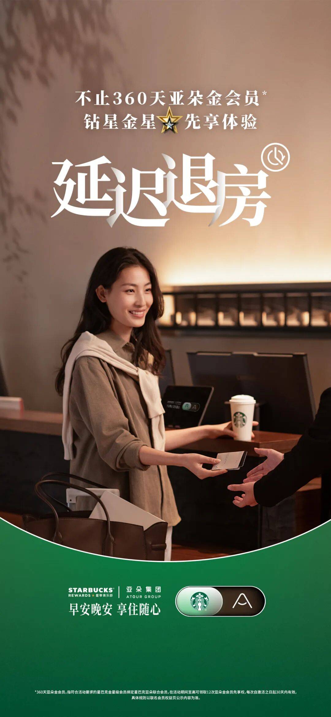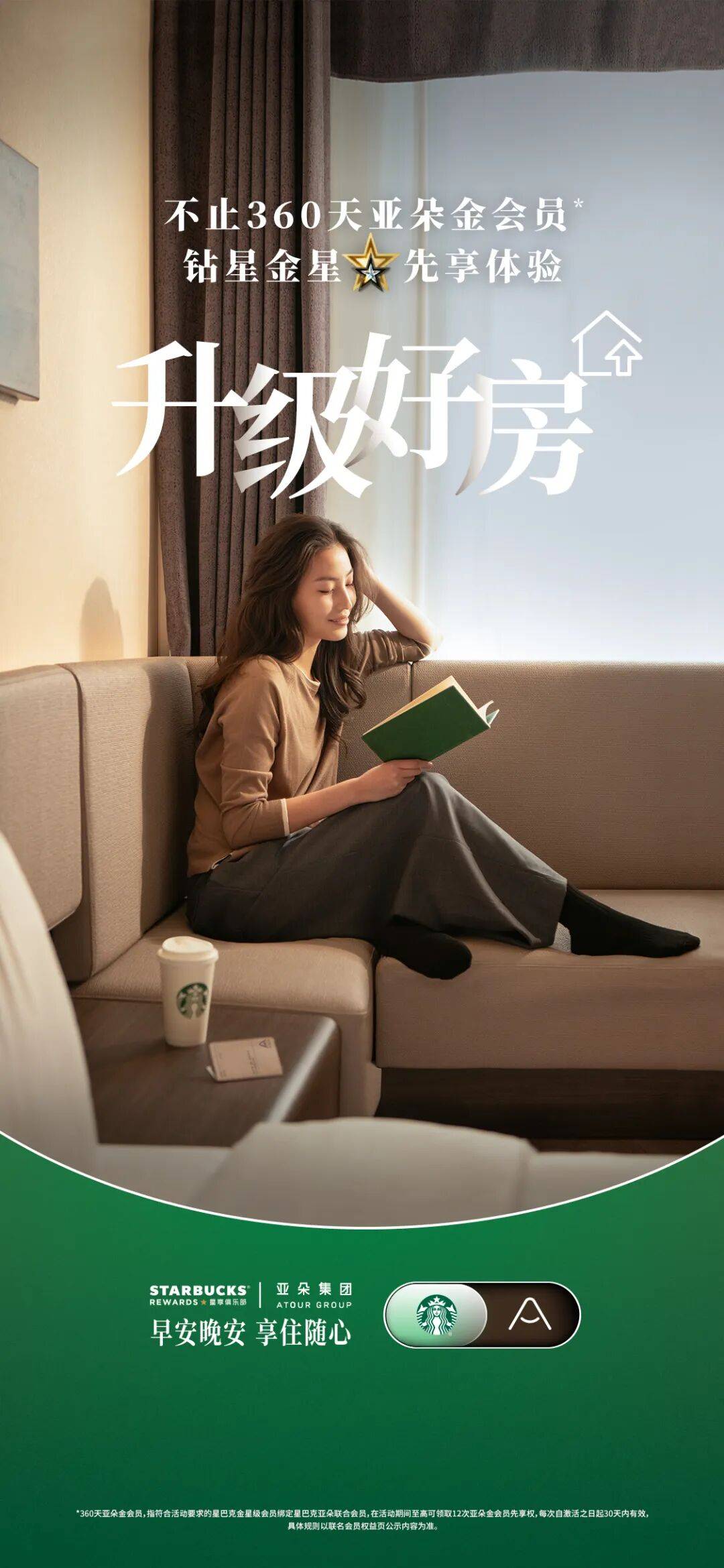 如果你是星巴克钻星会员,更可将12次中的3次亚朵金会员先享权升级为亚朵铂金会员先享权,从而额外体验包括至高18张亚朵升房券在内的亚朵铂金会员核心权益。再配上星巴克的2倍积星,每一杯咖啡的消费,都在为下一次福利攒足底气。