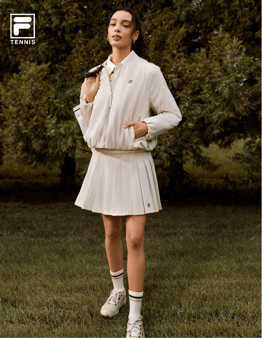 以“Tenniscore”和“网球老钱风”为代表的网球时尚风潮席卷社交平台,FILA正是核心推动者。其标志性产品“苏珊裙”成为现象级爆款;复刻品牌网球历史的“BB1大满贯POLO”等单品,持续强化着“网球老钱风”的审美影响力。