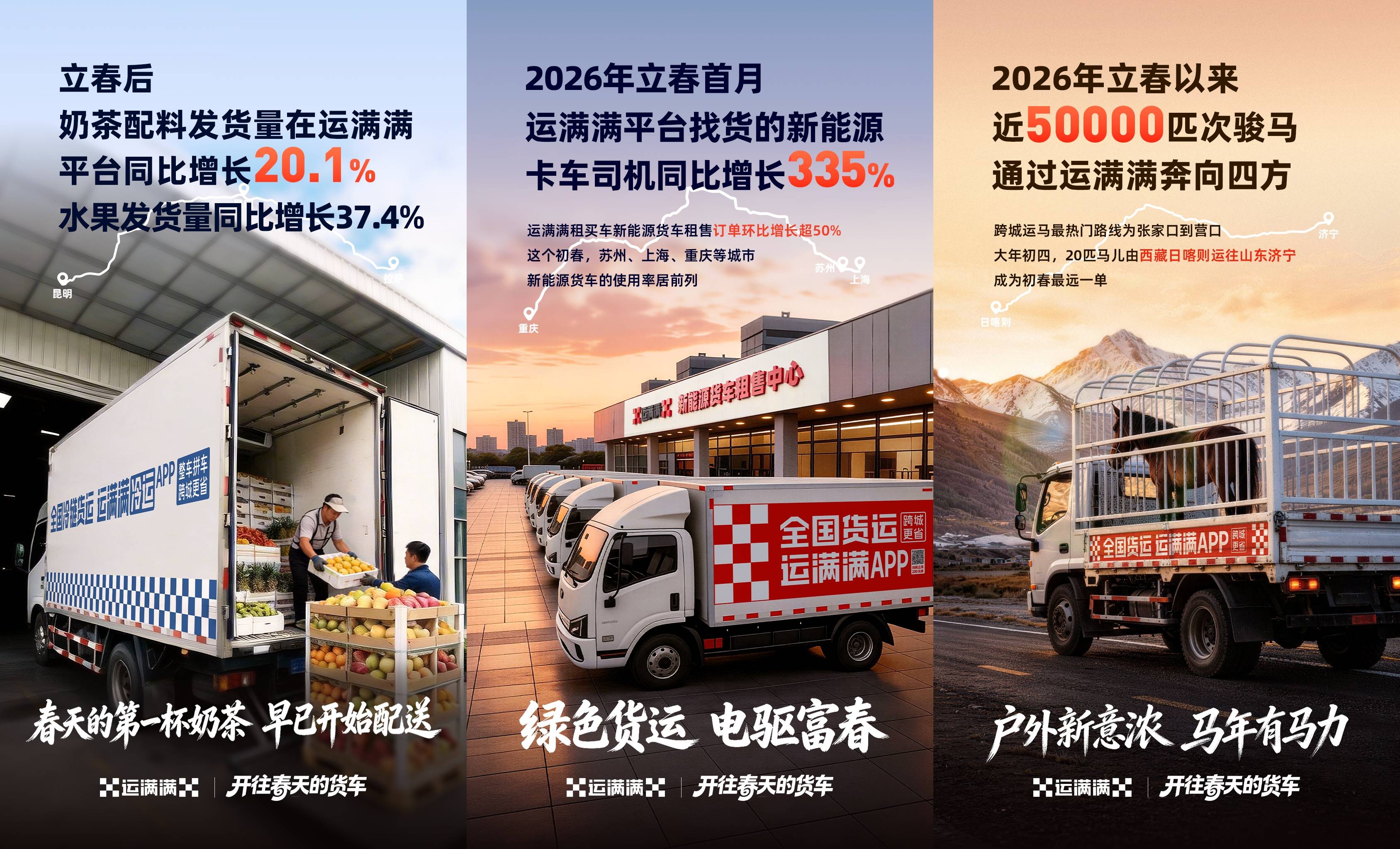 作为经济运行的“晴雨表”,货运物流数据往往能最先感知季节更替与经济脉动。日前,数字货运平台运满满发布的2026年初春货运大数据显示,今年初春,货运市场呈现出“货流旺、线路活、业态新”的显著特征。其中,新能源司机同比激增335%、水果发货量增长38.05%、一个半月运输近5万匹次马等数据,不仅勾勒出春日消费的新图景,更折射出中国物流行业在绿色化、智能化转型上的深层变革。