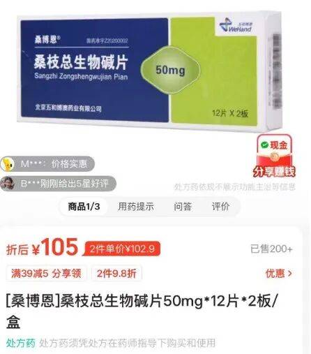 美团平台显示,一盒桑博恩的价格为105元,高于阿卡波糖等集采后10–20元/盒的同类产品,价差显著。
