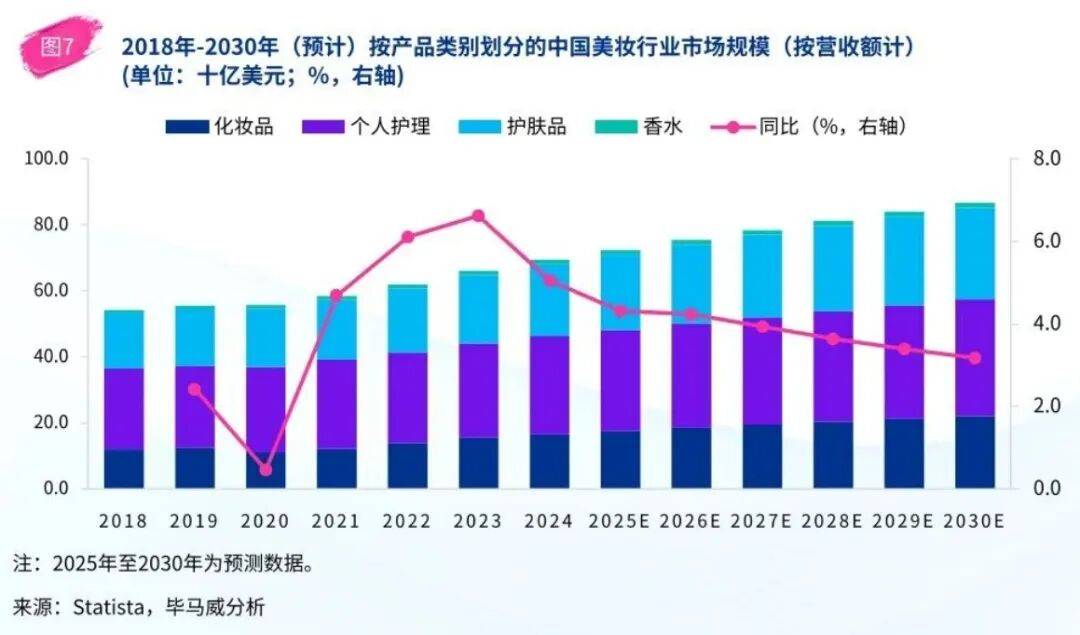 (图 / 中国美妆行业市场规模数据(来源:毕马威))