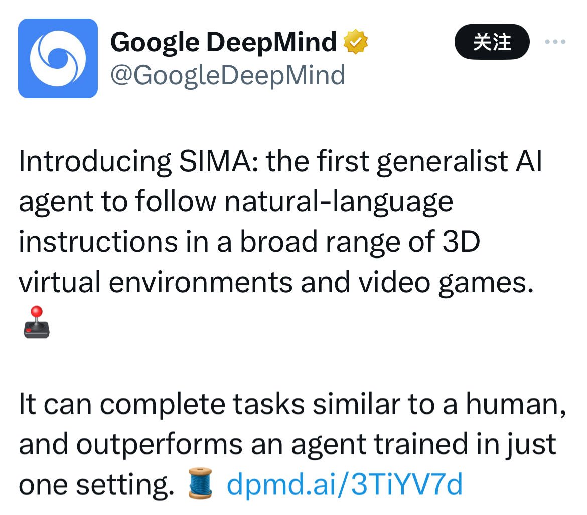 谷歌“游戏搭子”SIMA即将上线:通用AI智能体如何改变3D