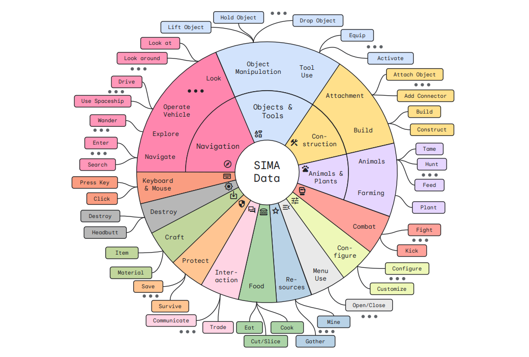 为使SIMA的学习和训练更为有效,DeepMind团队选择了更注重开放式游戏而非叙事的游戏,这类游戏以随机、自发为特点,可以在最大程度开发SIMA对于环境信息的获取范围。