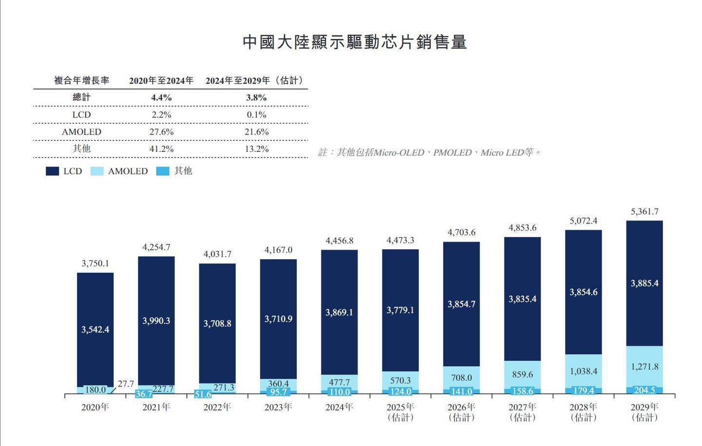 根据公开数据,中国大陆显示面板产能全球占比从2020年的50%跃升至2024年的70%,预计到2029年将突破80%大关,彻底奠定其全球制造中心的地位——这种结构性转移不仅重塑了面板产业链格局,更直接推动了中国显示驱动芯片市场的爆发式增长:2020至2024年间,中国大陆显示驱动芯片销售量从37.5亿颗增至44.56亿颗,全球市场份额同期从45.3%攀升至53.9%,而AMOLED面板产能占比在2024年已达全球55%,预计2029年将突破60%。