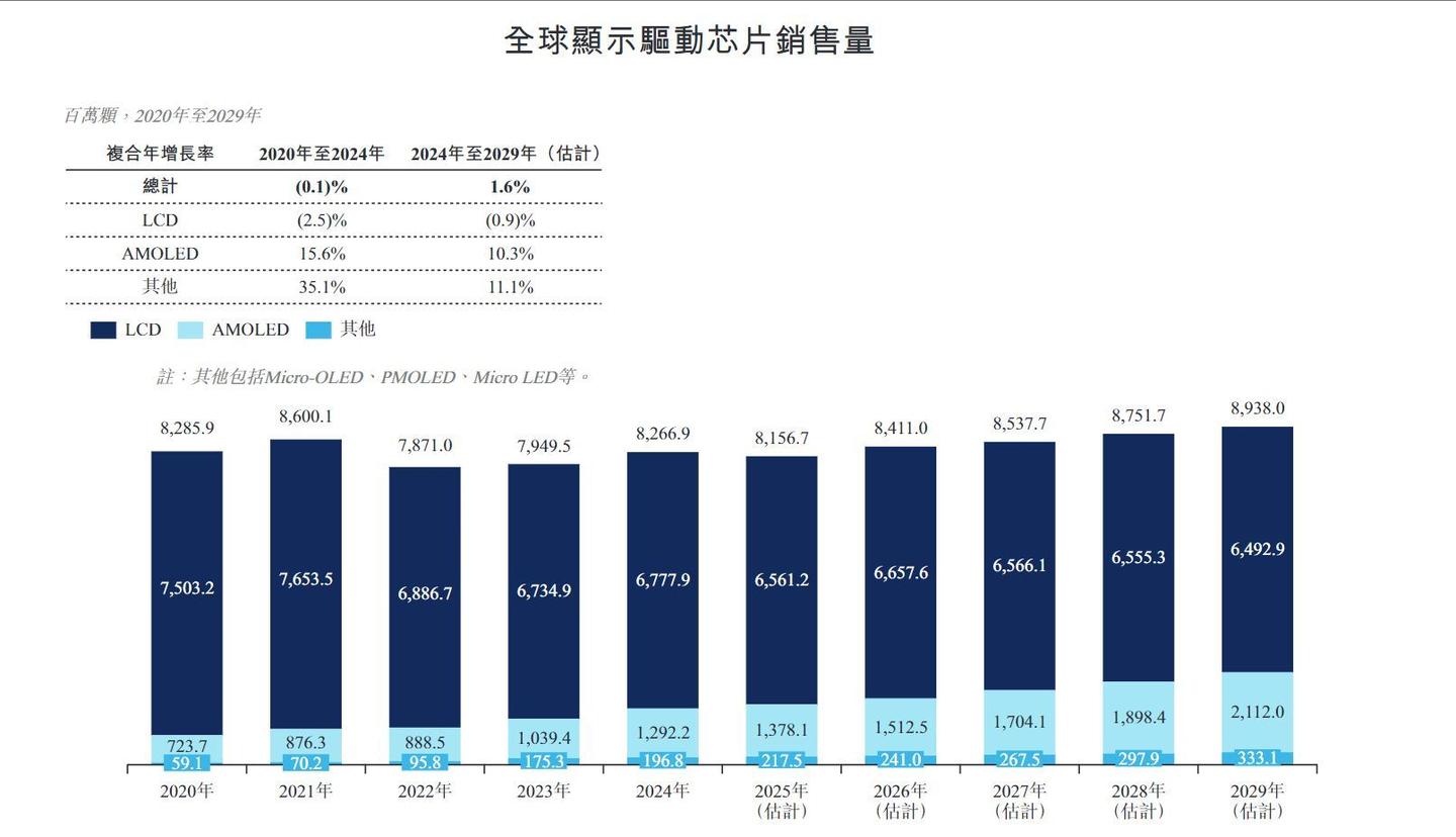 其技术壁垒体现在高像素密度解决方案——2017年推出全球首款5644 PPI的Micro-OLED背板芯片,2024年在该领域全球市占率达40.7% (全球第二),同时AMOLED驱动芯片销量超5,140万颗,全球市场份额4.0%(中国大陆第一、全球第五)。