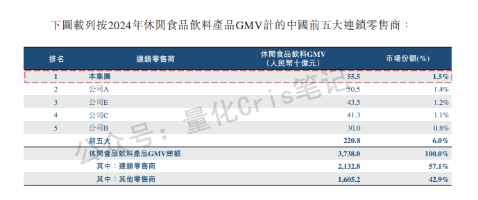 但需要注意的是,即便做到这个规模,鸣鸣很忙在整个休闲零食零售市场中的份额也只有约 1.5%,说明这个赛道几乎无门槛。