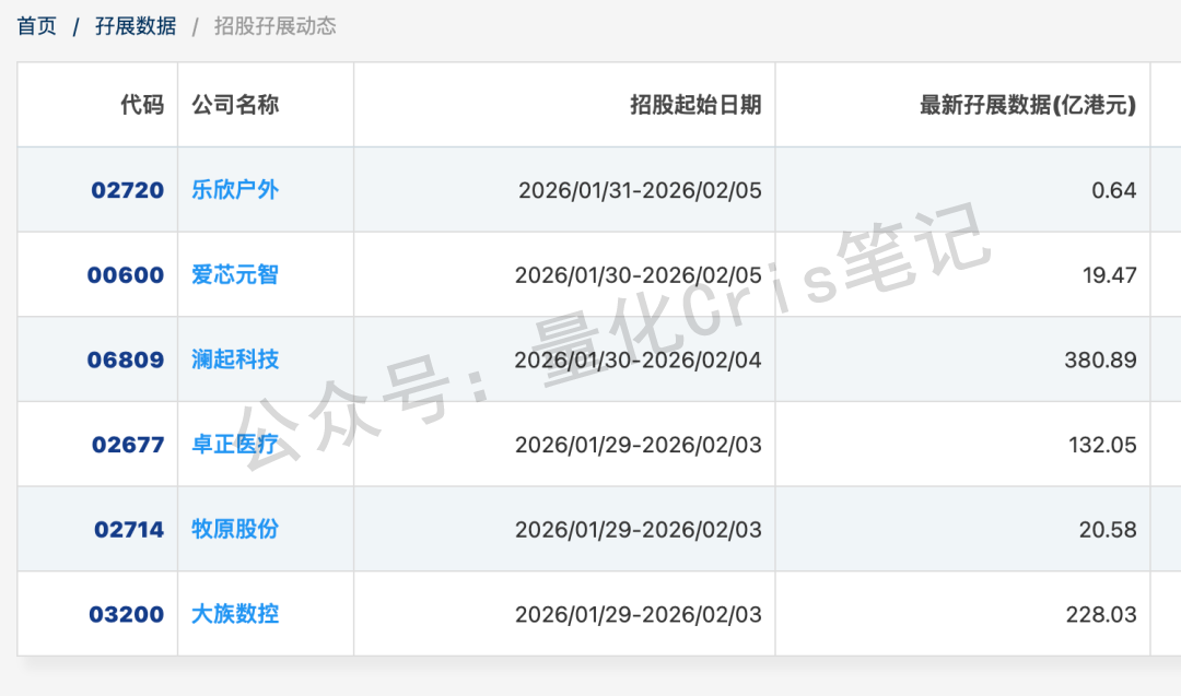 乐欣户外,这支周末临时上的,还没来得及介绍,钓鱼佬的最爱,总手数5641手,门票6125港元,保荐人中金,无绿鞋有基石。按照以前的经验来看,手数少反而好博爆发。目前热度低的原因是一二梯队分流,加上前面的资金还没释放,估计要到2月4号晚上才能看个大概。这支等回款也可以打,博彩票。