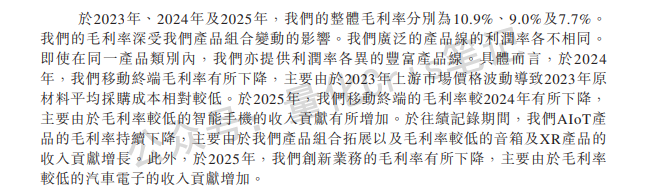 ODM这门生意,本质上就是大客户、大订单、大体量,但议价权未必真在你手里。公司当然有平台化优势,也能吃到AI服务器和数据中心放量,但它同时也要面对智能手机、AIoT这些低毛利业务占比高、价格竞争激烈、原材料和人工成本波动这些老问题。招股书里也直接说了,2025年移动终端毛利率下降,主要因为毛利率更低的智能手机收入贡献增加;AIoT和创新业务毛利率下滑,也和低毛利产品占比上升有关。换句话说,华勤不是不能赚,而是这门生意天然就不太容易赚厚。