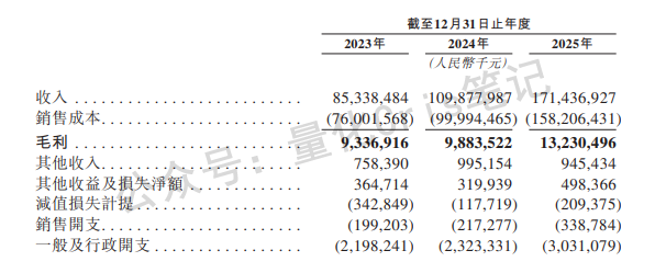 招股书写得很清楚,华勤整体毛利率2023年是10.9%,2024年降到9.0%,2025年再降到7.7%。分业务看,移动终端毛利率从14.4%掉到9.0%,计算及数据中心业务2025年毛利率也只有6.0%。利润端虽然绝对值不小,2025年赚了41.32亿元,但对着1714.37亿元的收入一除,净利率也就2.4%左右。