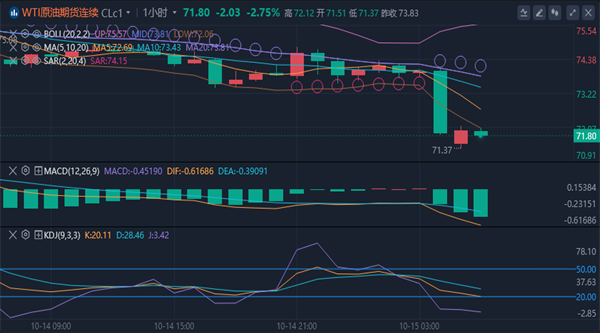 【原油消息面分析】:原油市场周一走势疲软。布伦特原油期货下跌1.2%,报每桶78.09美元;美国WTI原油期货同样下跌1.22%,至每桶74.64美元。油价的回落主要受到对全球石油需求疲软的担忧影响。