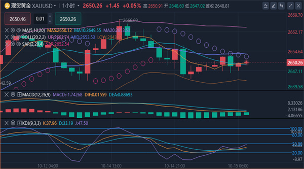 【黄金消息面分析】:周一(10月14日),黄金价格维持反弹趋势。现货黄金在欧市早盘一度升至2666.81美元/盎司,创下逾一周高点。这一走势主要受中东地缘政治危机以及市场对美联储降息预期的提振。