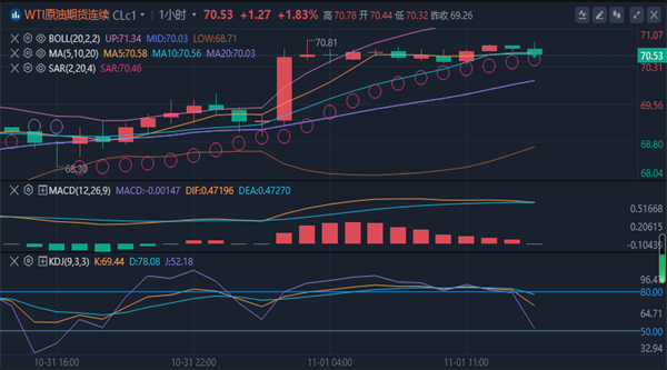 【原油技术面分析】:原油昨日出现了先跌后涨走势,开盘后回撤低点在68.2一带企稳反弹,随后破高后给到了70.7美元一带徘徊。原油日线级别上看,油价昨天整体走势很强,符合预期看涨,日线收取大阳,虽然目前压力出现,但不影响油价的回补缺口,所以反弹还将继续多,趋势线的支撑依然有效。四小时级别上看,布林带出现了收口迹象,均线系统粘连运行在油价上方形成阻力位,进一步突破后将出现改变之前油价空头格局,但是很显然当前的动能还不够,短线上处于向上形态中,先关注油价回补上方缺口后是否能够延续。综合以上分析:原油先跌后涨多头得到延续,今日操作上考虑回撤布局多单为先.