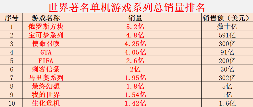 第三个没想到,笔者从大学开始就一直钟情的使命召唤系列竟然也排到了历史第三。而且2003年至今20年竟然也卖出了2100多亿人民币。