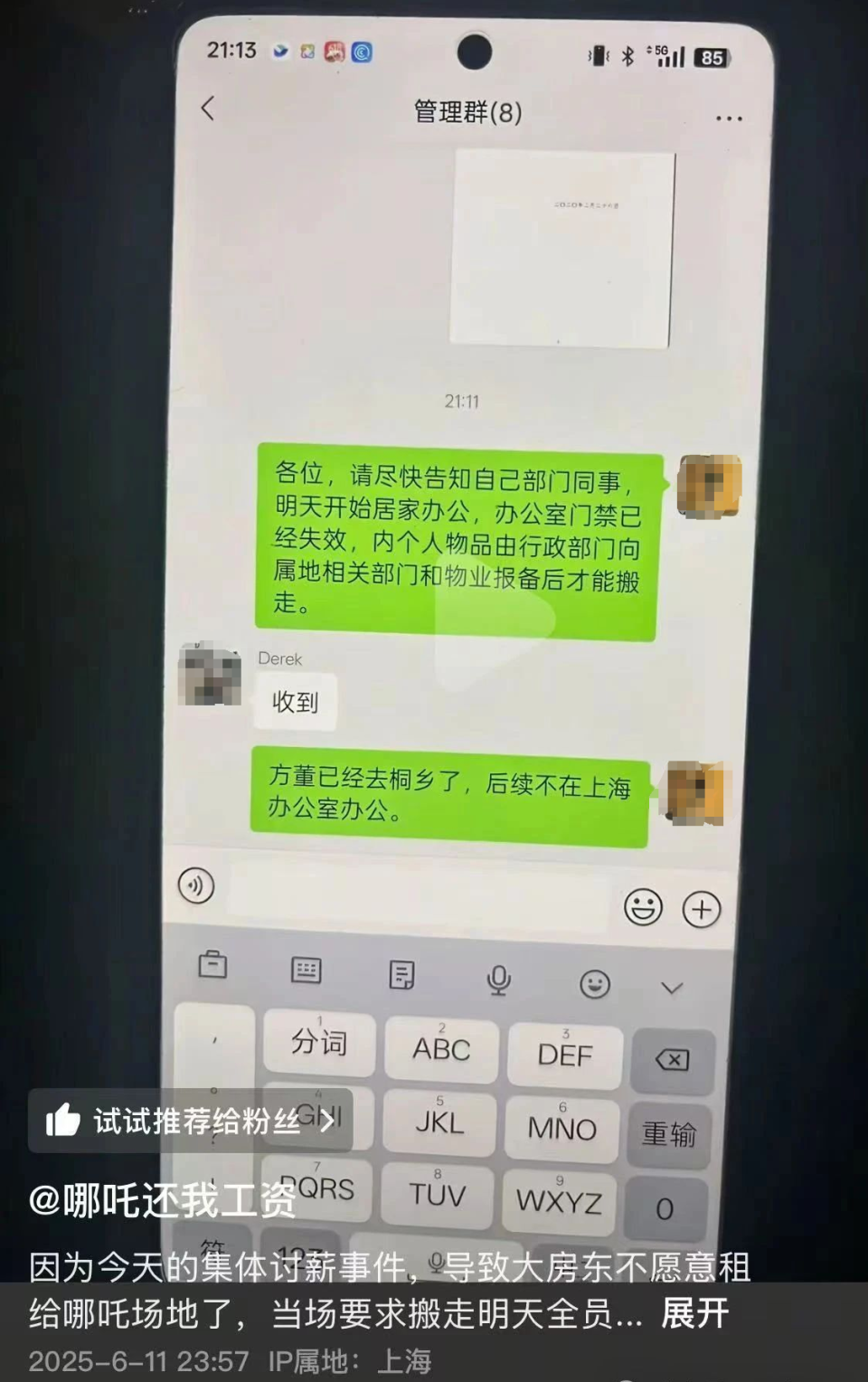 有员工表示,公司在花5亿元换LOGO时多么豪气,如今却连工资都发不出,反差太大。还有员工晒出欠薪条,称已数月未发工资,孩子奶粉钱都靠借。更有员工在社交网络上注册账号发布视频曝光哪吒汽车要求员工“居家办公”和大量欠薪等行径。