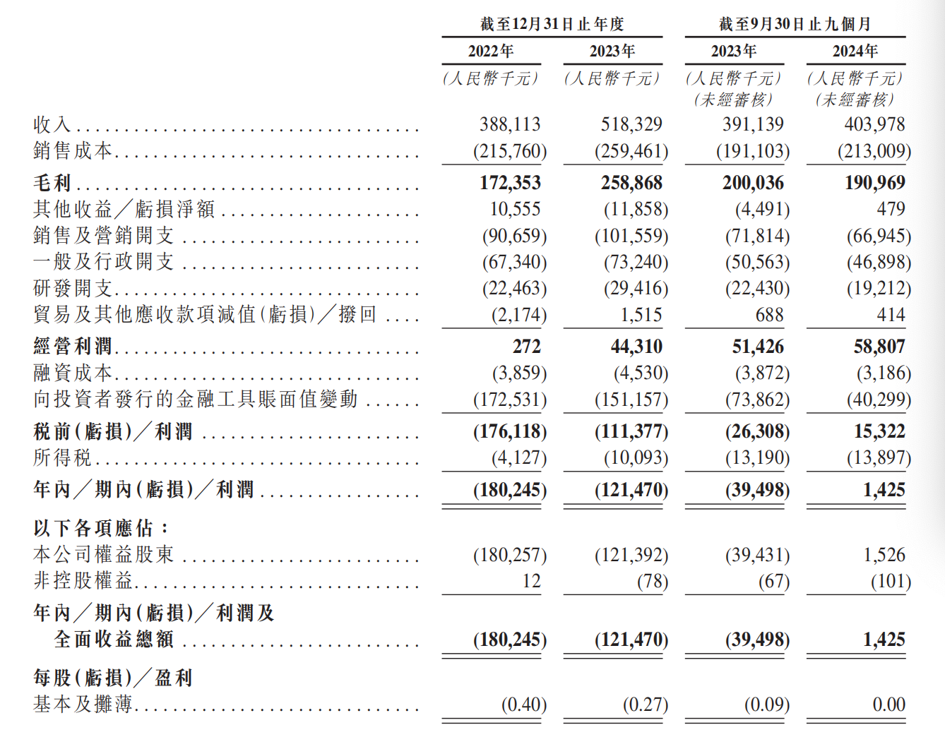 但公司期内利润连续两年为负,2022-2023年净利润分别为-1.8亿元、-1.2亿元,2024 年前三季度期内净利润也只有143万元,与经调整净利润的区别在于2022-2023年支付回购优先股的1.7亿元及1.5亿元,以及收购二手车平台等产生的无形资产摊销。