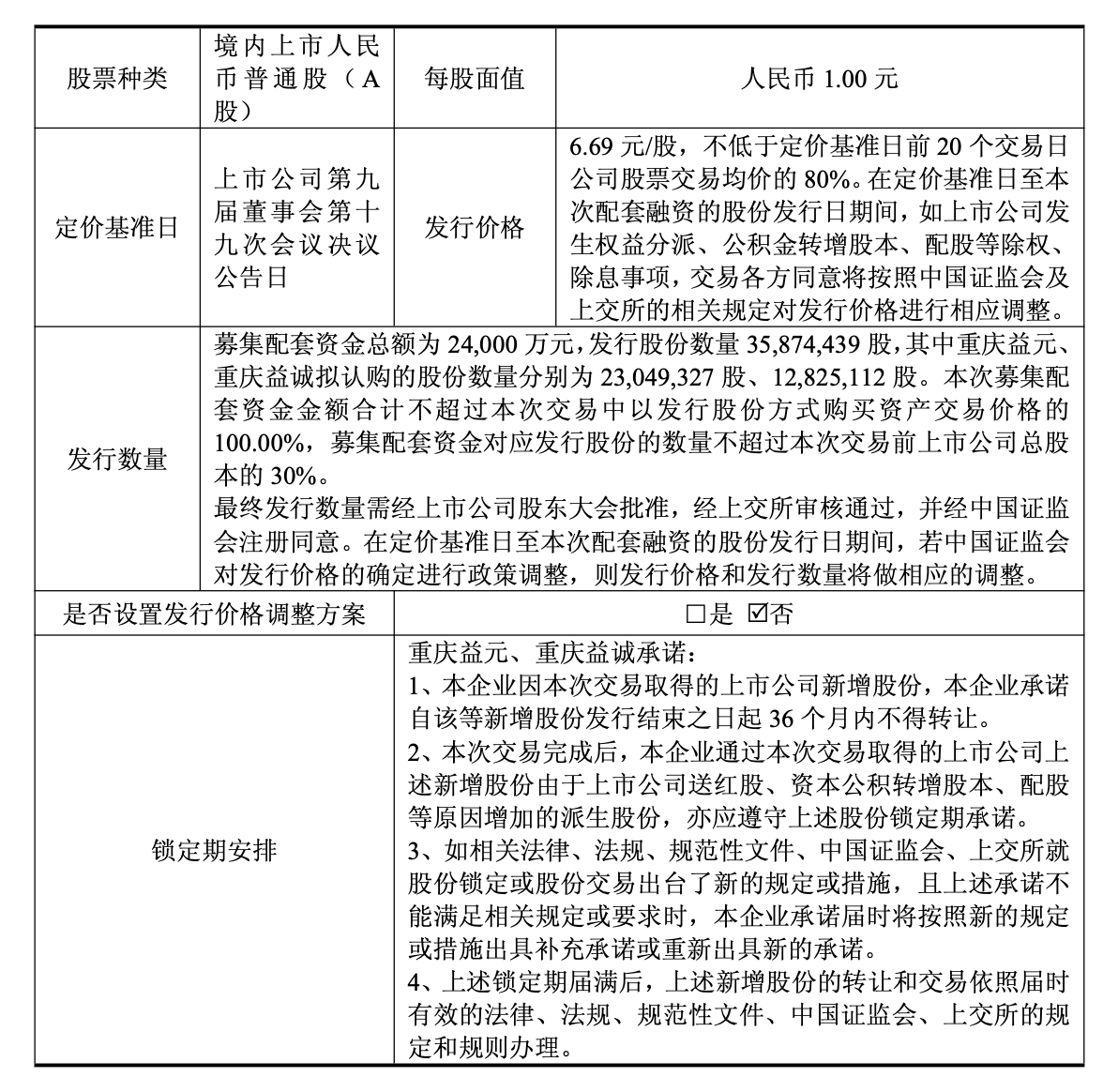 在交易方案中,狮头股份除了收购标的公司以外,另一部分计划则是向重庆益元企业管理有限公司、重庆益诚企业管理有限公司募集配套资金,总额为2.4亿元。