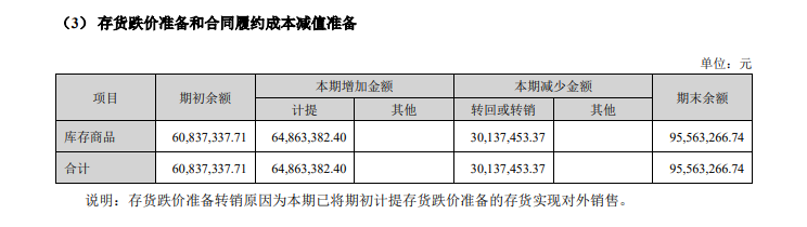 其中存货方面,2025年上半年,华致酒行库存商品计提存货跌价准备和合同履约成本减值准备(下称“存货减值”)6486万元,加之3014万元的存货跌价准备转销,合计计提减值9556万元。